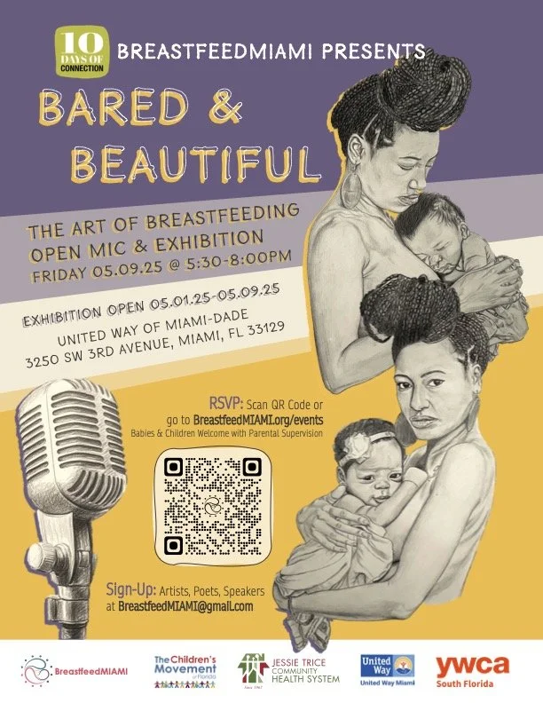 Join us for an unforgettable evening of art, storytelling, poetry, and conversation about the beauty, challenges, and power of breastfeeding! Art will be exhibited from May 7th-9th in the Ansin and Center for Excellence (CFE) buildings at United Way of Miami-Dade.